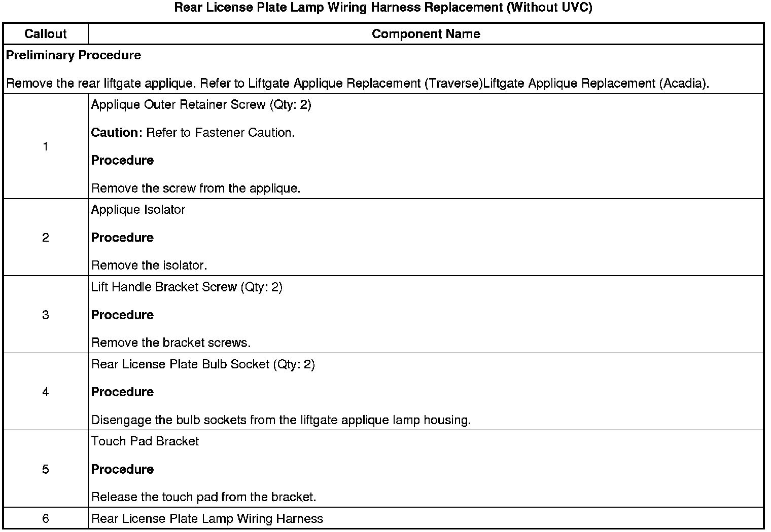 Rear License Plate Lamp Wiring Harness Replacement (Without UVC)