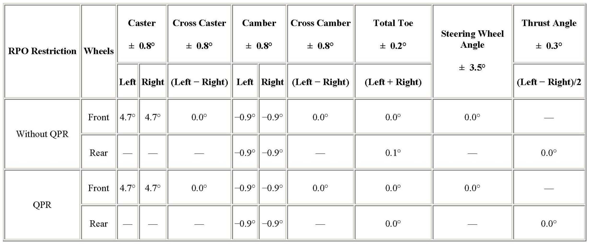 Alignment Condition: Full tank of fuel, no passengers and placed on flat level surface.