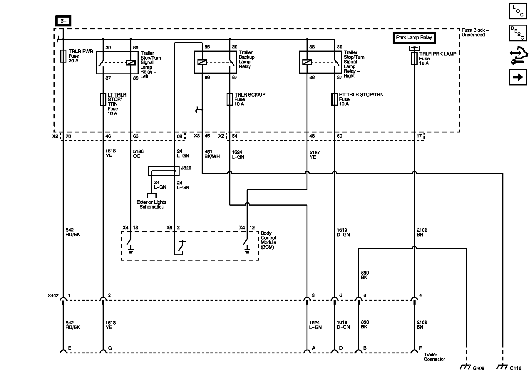 LT TRLR STOP/TRN, TRLR BCK/UP, and RT TRLR STOP/TRN Fuses
