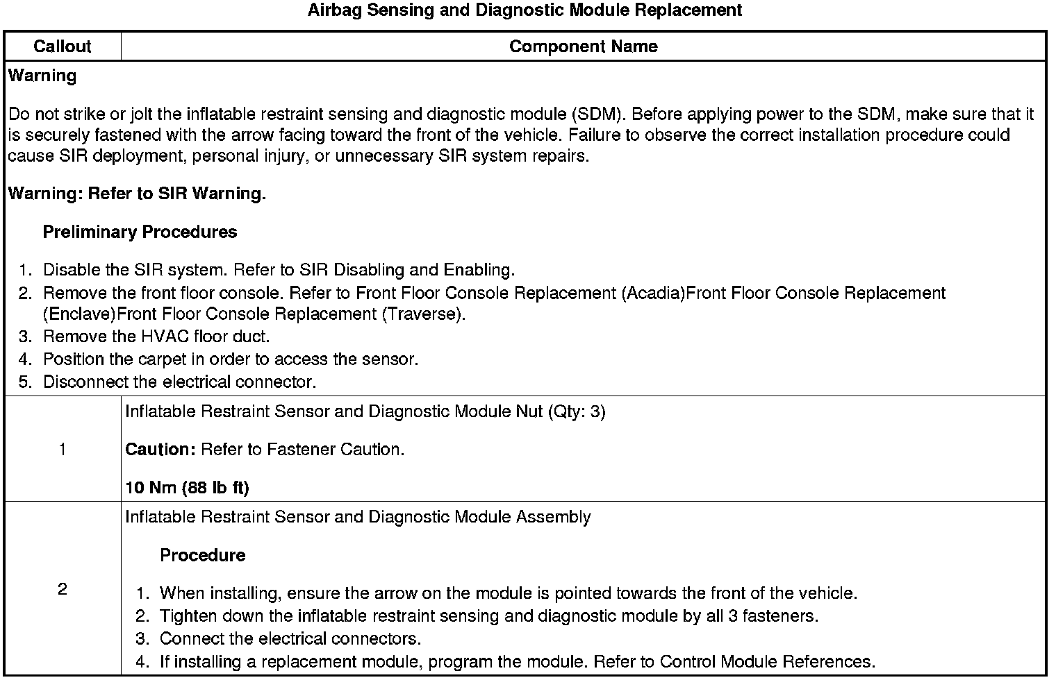 Airbag Sensing and Diagnostic Module Replacement