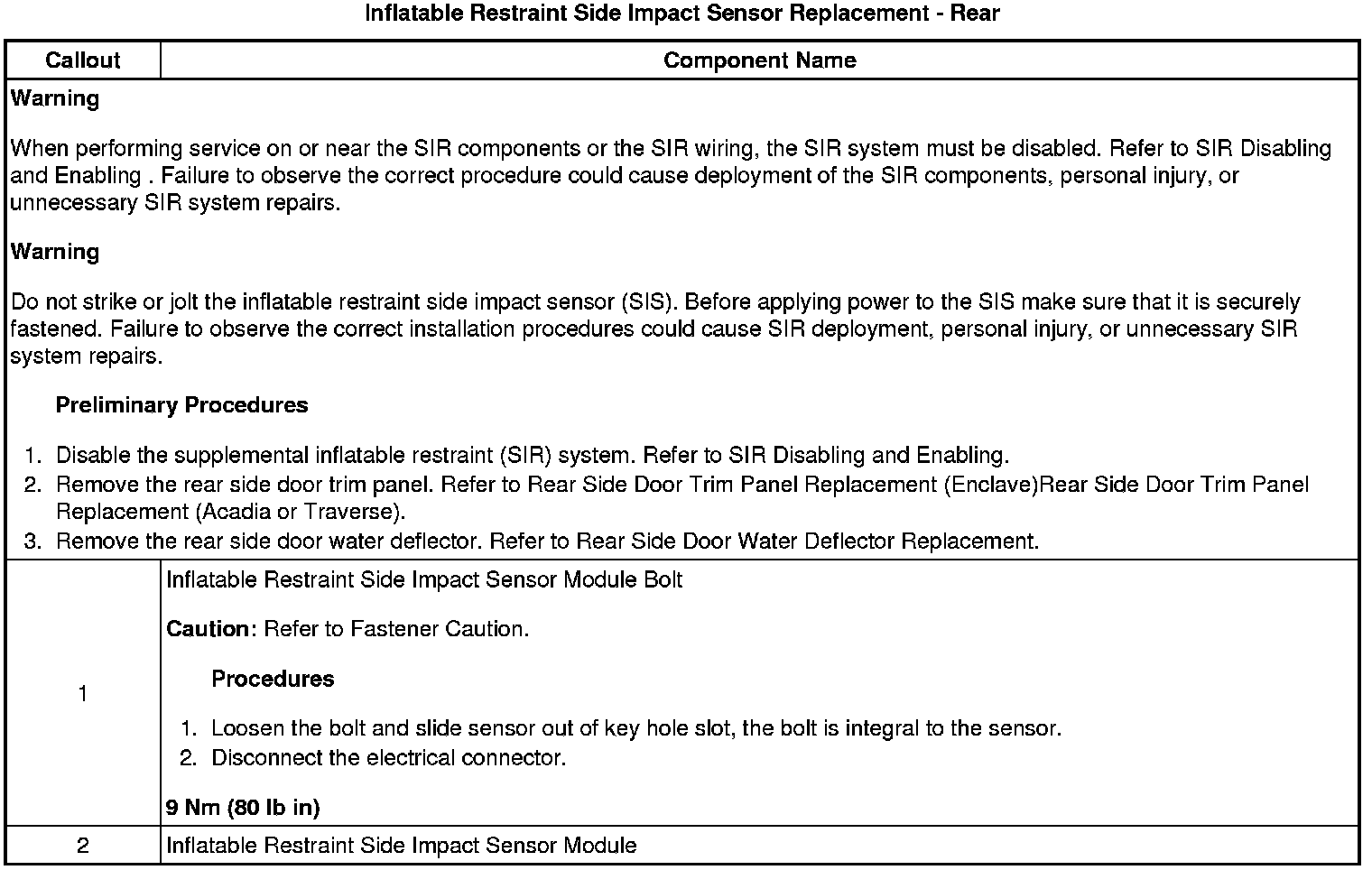 Inflatable Restraint Side Impact Sensor Replacement - Rear
