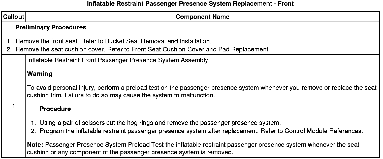 Inflatable Restraint Passenger Presence System Replacement - Front