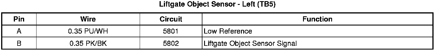 Liftgate Object Sensor - Left (TB5)
