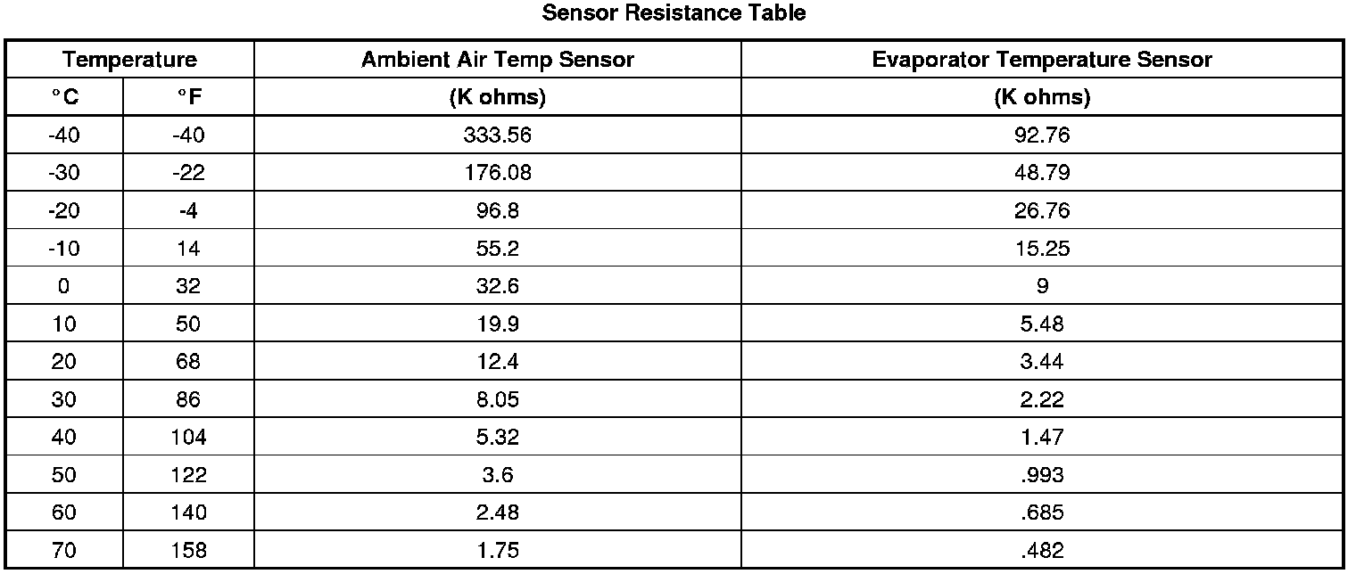 Sensor Resistance Table