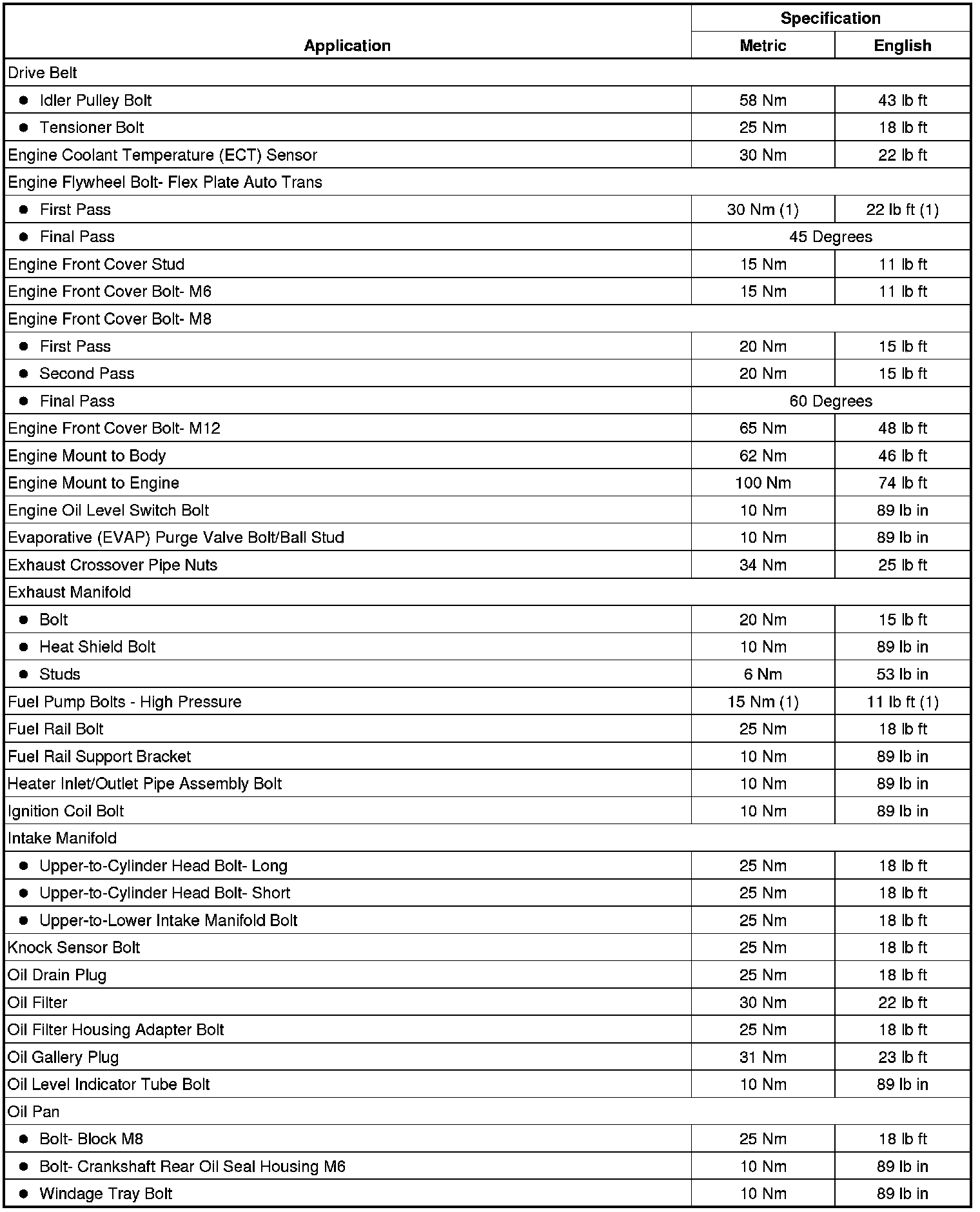 Fastener Tightening Specifications