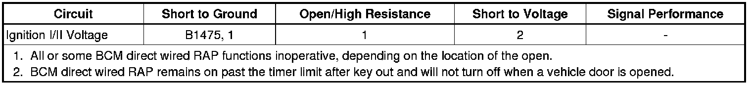 * The radio RAP function is a separate RAP function controlled by serial data and the specific module. These functions are not effected by the BCM ignition I/II voltage circuit.