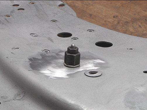 3. Remove any loose metal particles from the damaged or stripped weld nut with a stiff brush.
