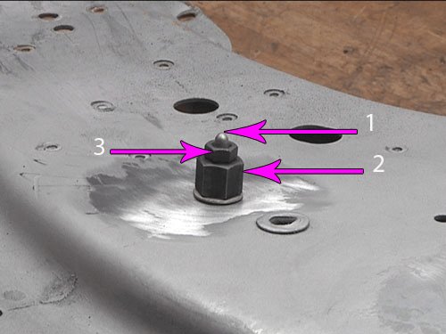 The rivet stud and surrounding panel area MUST BE properly refinished PRIOR to the installation of the ground wire terminal and conductive nut to maintain a secure, stable and corrosion-free electrical ground.