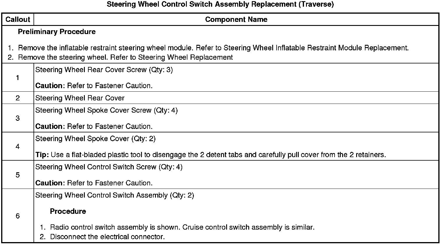 Steering Wheel Control Switch Assembly Replacement (Traverse)
