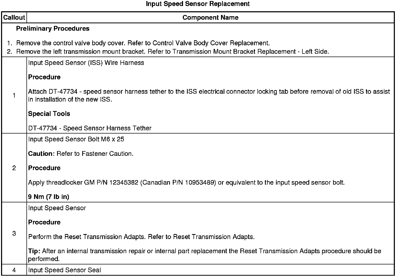 Input Speed Sensor Replacement