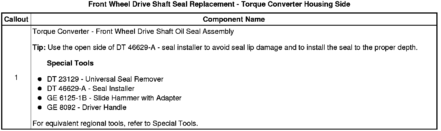 Front Wheel Drive Shaft Seal Replacement - Torque Converter Housing Side