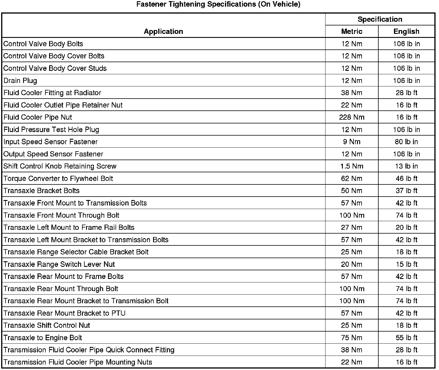 Fastener Tightening Specifications (On Vehicle)