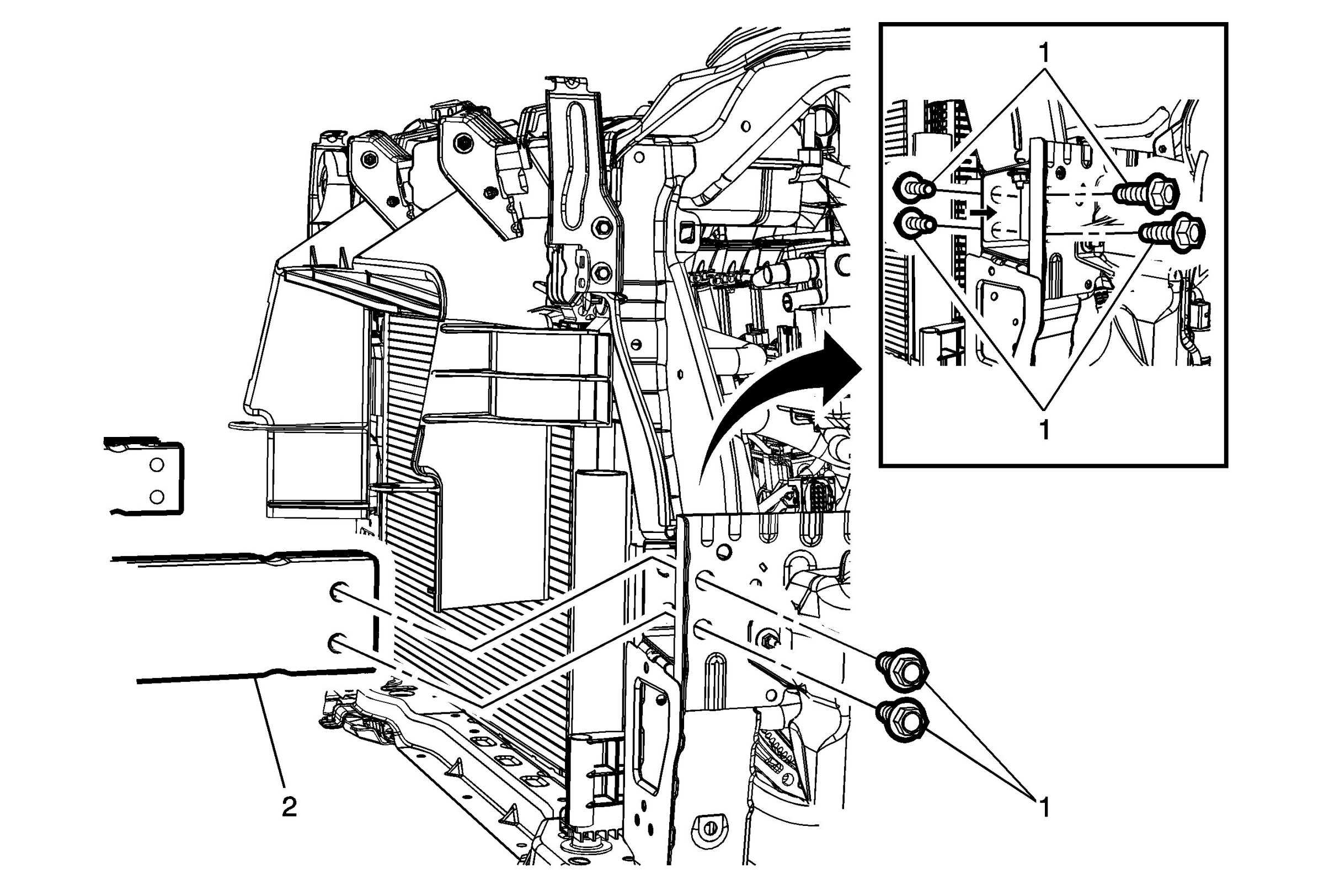 2.Reposition the radiator from the front bumper impact inner bar bolts. Refer to Radiator Upper Bracket Replacement .