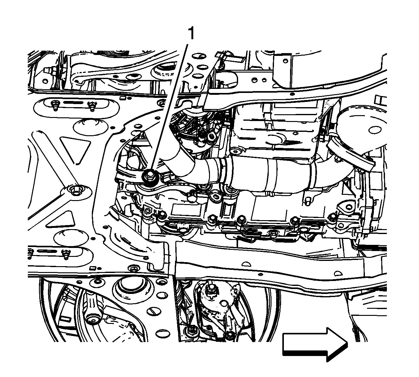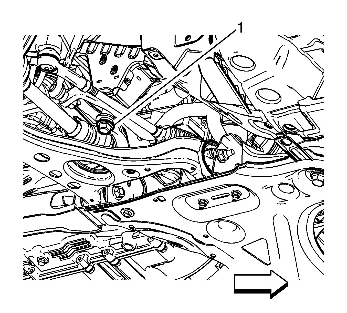12.Remove the rear transmission mount bracket to rear mount through fasteners (1).