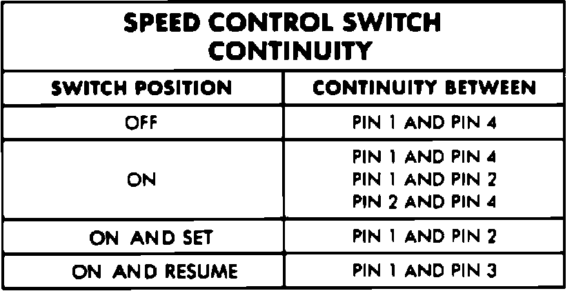 Fig. 9 Speed Control Continuity Chart. 1991 Models: