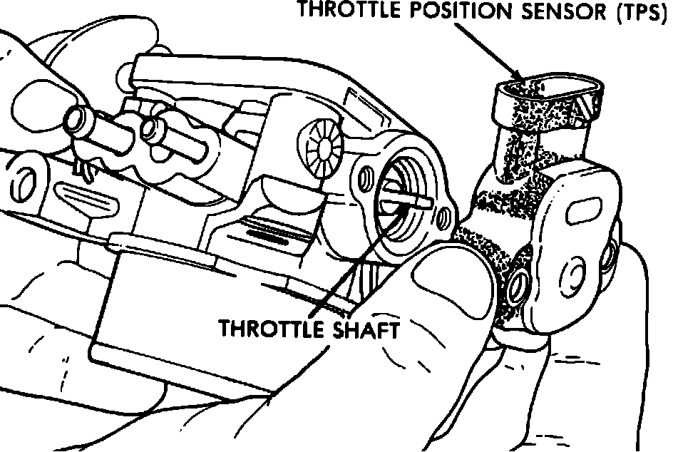 3. Remove the mounting screws (2), and remove the TPS from the throttle shaft.