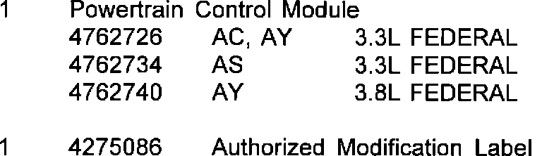 The 1992 AC, AS, & AY Models, With FEDERAL EMISSIONS, do not have "Flash" capacity in the PCM. Therefore, these vehicles will require the replacement of the Powertrain Control Module with one that has revised software.