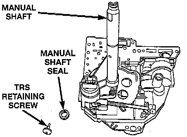 NOTE: The transmission range sensor is located within the transaxle. To remove the TRS the transaxle oil pan and valve body must be removed.