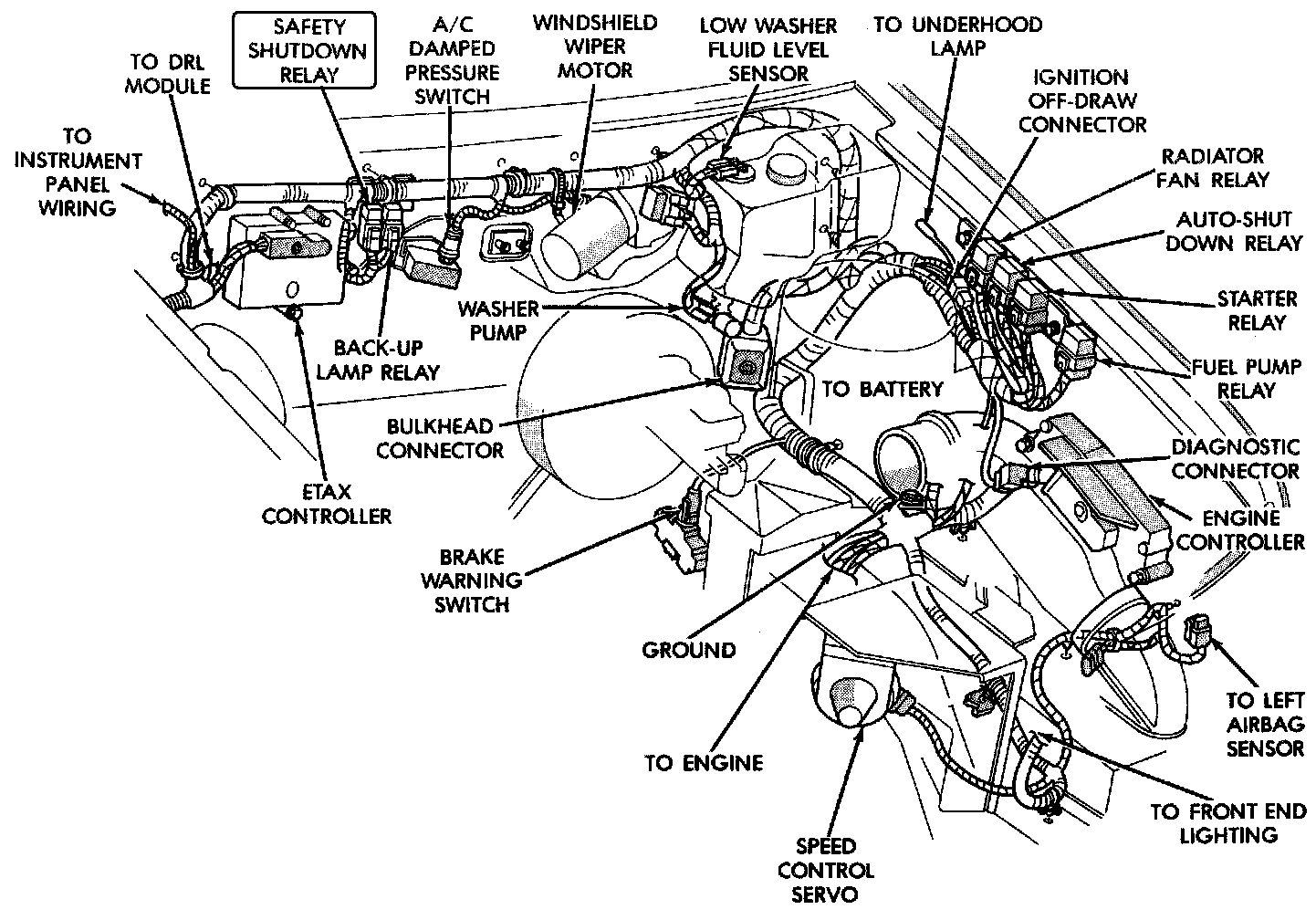 The EATX (Electronic Automatic Transaxle) Safety Shutdown Relay is mounted on the engine compartment passenger side firewall.