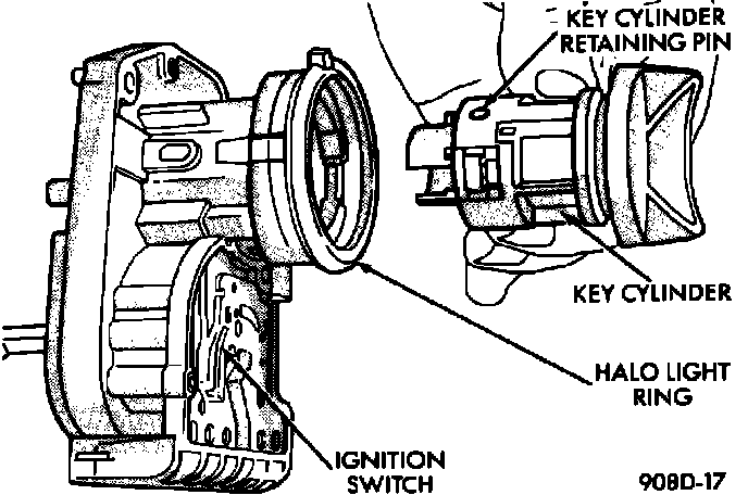 8. Check for proper operation of the halo light, shift lock (if applicable), and column lock. Also check for proper operation of the ignition switch accessory, lock, off, run, and start positions.