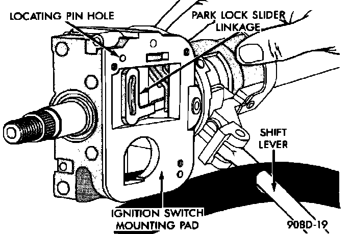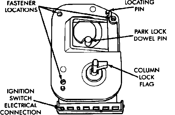 2. Before attaching the ignition switch to a tilt steering column, the transmission shifter must be in Park position. Also the park lock dowel pin and the column lock flag must be properly indexed before installing the switch.