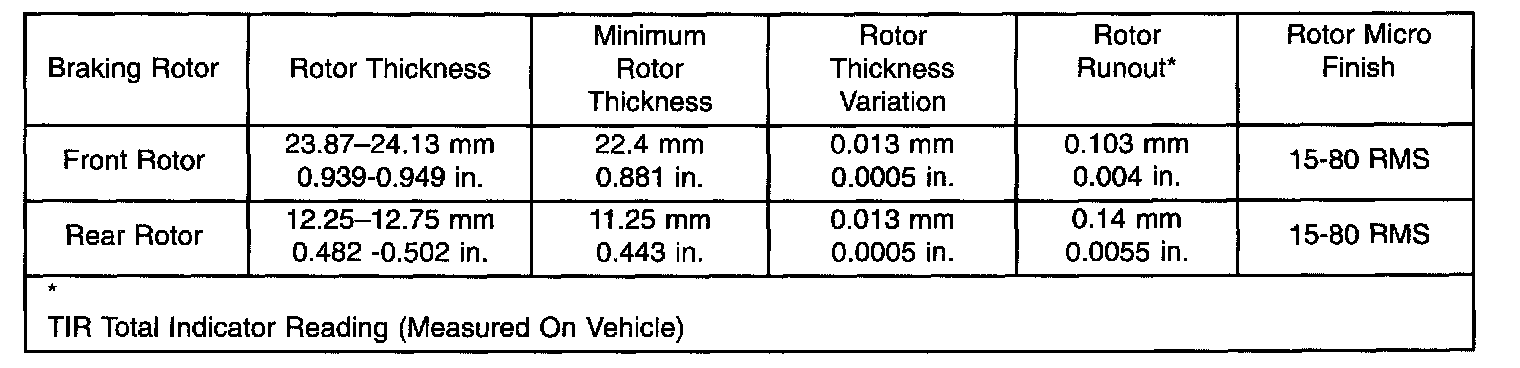 NOTE: All rotors have markings for minimum allowable thickness cast on an un-machined surface of the rotor.