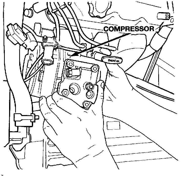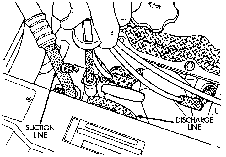 REMOVALWARNING: REFER TO REFRIGERANT SERVICE PROCEDURES FOR INFORMATION REGARDING PROPER RECOVERY OF THE REFRIGERANT BEFORE ATTEMPTING TO REMOVE THE COMPRESSOR.