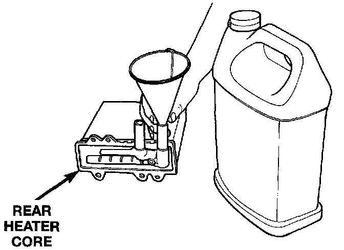 NOTE: If the heater core was emptied and was not prefilled, it is necessary to thermal cycle the vehicle TWICE. The heater core is positioned higher than the radiator fill cap. Therefore the heater core will not gravity fill to level. To thermal cycle the vehicle, it must be operated till the thermostat opens, then turned off and allowed to cool. In order to verify that the auxiliary unit is filled completely, the following procedure can be used: