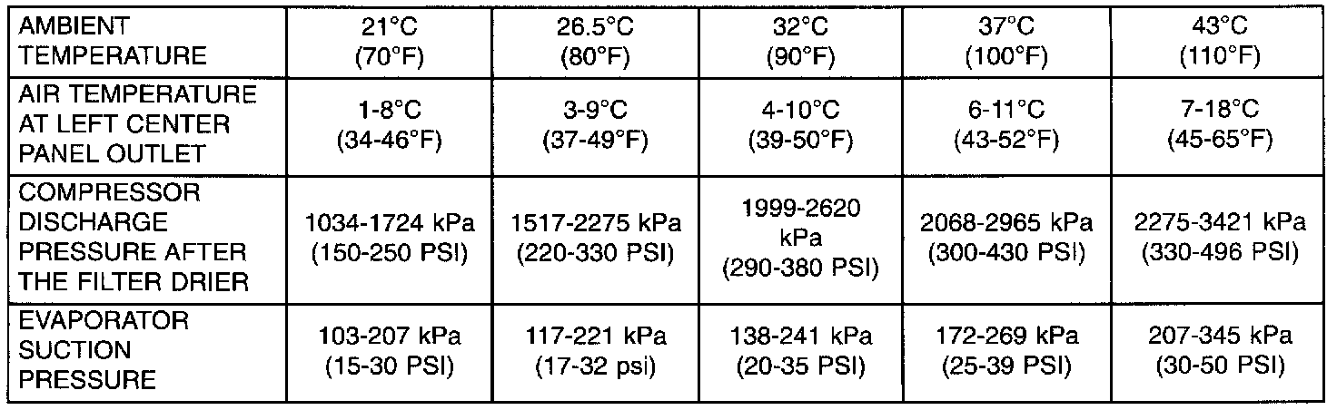 7. If the discharge air temperature fails to meet the specifications in the performance temperature chart. Refer to the Refrigerant Service Procedures for further diagnosis.