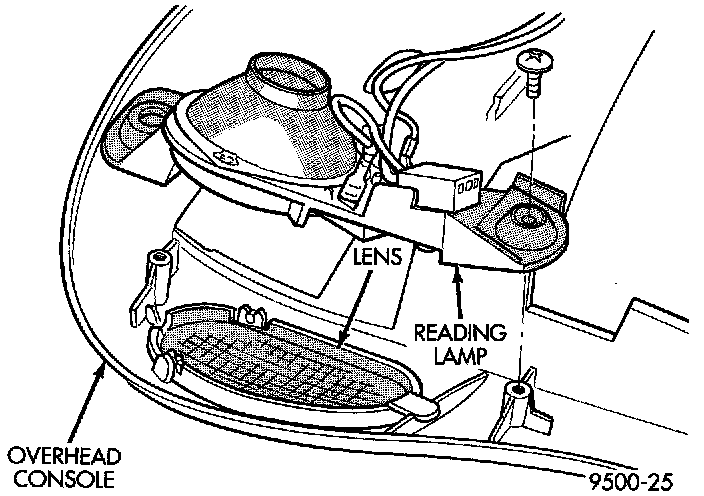 3. Remove the screws holding the reading lamp to the overhead console.