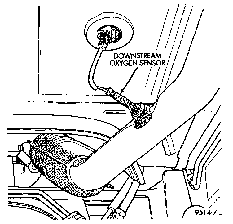 The downstream heated oxygen sensor threads into the outlet pipe at the rear of the catalytic convertor. The downstream heated oxygen sensor input is used to detect catalytic convertor deterioration. As the convertor deteriorates, the input from the downstream sensor begins to match the upstream sensor input except for a slight time delay. By comparing the downstream heated oxygen sensor input to the input from the upstream sensor, the PCM calculates catalytic convertor efficiency.