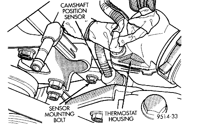 The distance between the bottom of sensor and the camshaft sprocket is critical to the operation of the system. When servicing the camshaft position sensor, refer to the 3.3L and 3.8L Multi-Port Fuel Injection-Service Procedures.