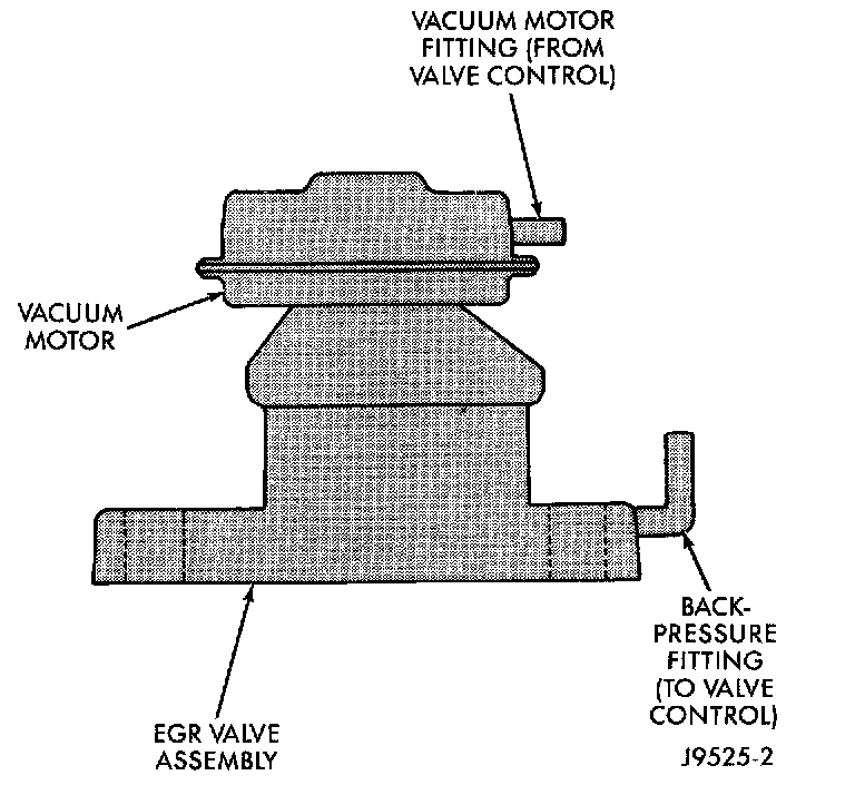 1. All engines are equipped with two fittings located on the EGR valve. The upper fitting located on the vacuum motor. supplies engine vacuum to a diaphragm within the EGR valve for valve operation. The lower fitting (located on the base of the EGR valve) is used to supply exhaust back-pressure to the EGR valve control.