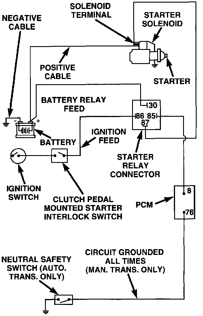 - A low amperage circuit to control the starter solenoid.
