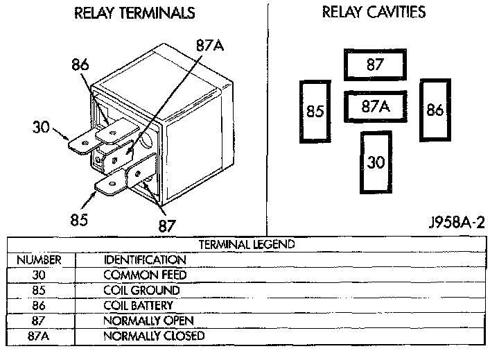 2. The relay normally closed terminal (87A) is connected to terminal 30 in the de-energized position, but is not used for this application. Go to Step 3.