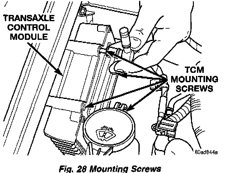 2. Remove Transmission Control Module mounting screws and lift module from vehicle (Figs 28 and 29).