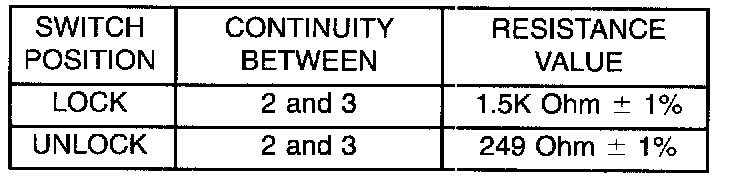7. If resistance values are not within the parameters shown replace the door lock switch.