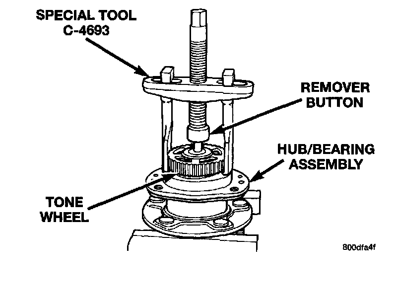 This procedure is for the removal of the ABS rear tone wheel from the rear hub and bearing on front wheel drive vehicles. Vehicles equipped with AWD have a tone wheel mounted on the driveshaft outer constant velocity joint and it is serviced with the driveshaft.REMOVE