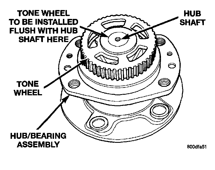 2. Press the tone wheel onto the hub/bearing assembly until it is flush with the end of hub shaft.