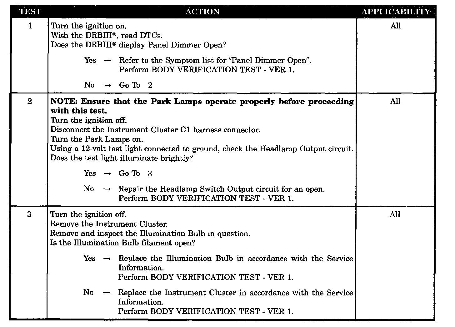 INSTRUMENT CLUSTER DIMMING INOPERATIVE