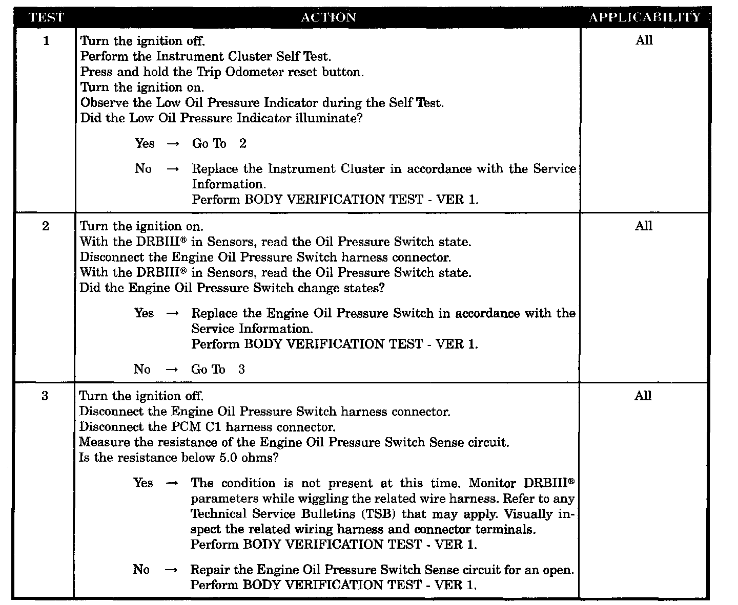 Engine oil pressure switch sense circuit open