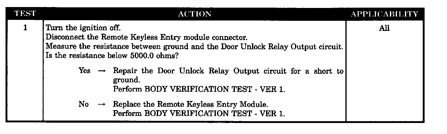 Remote keyless entry module - unlock relay