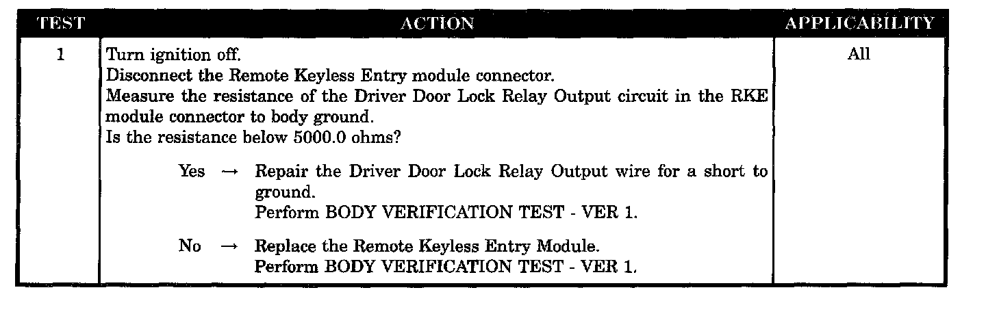 RKE module defective - driver lock open