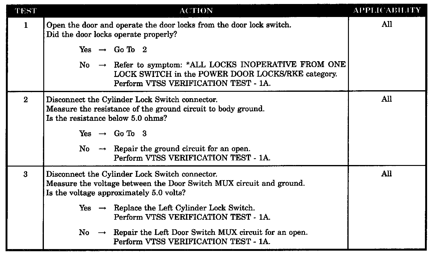 VTSS Fails to Arm From Left Door Cylinder Lock Switch