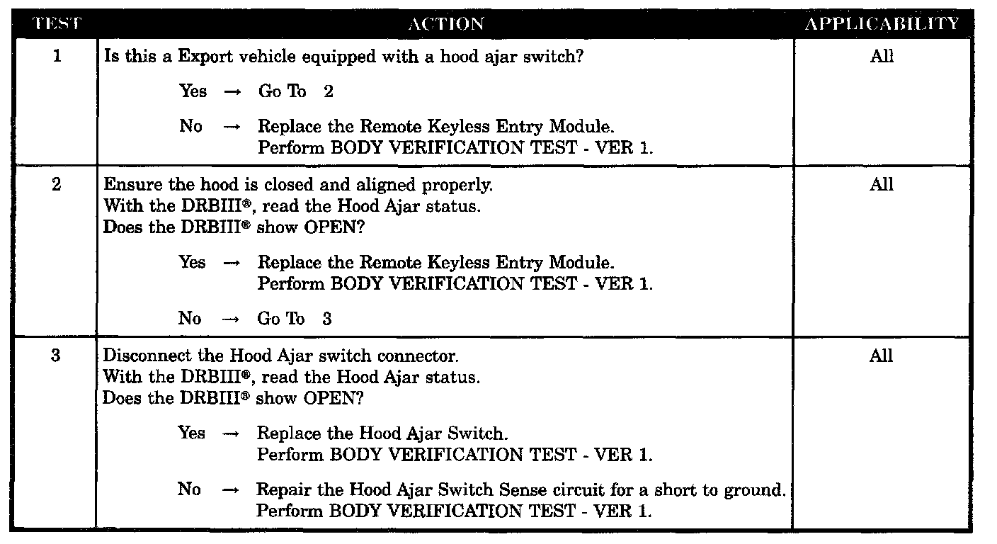 - Hood ajar switch sense circuit shorted to ground (if equipped)