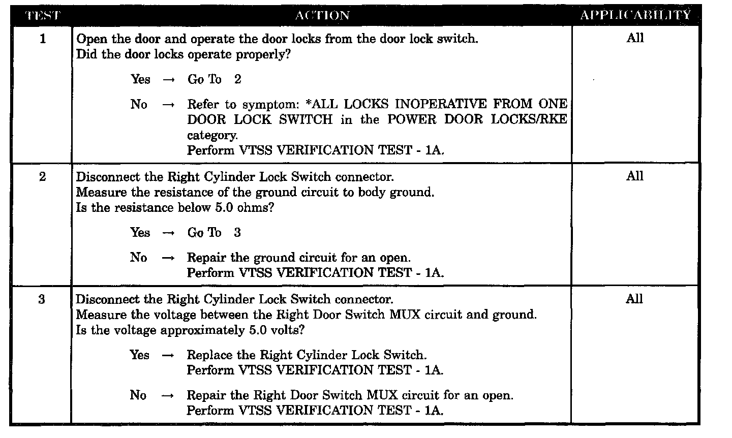 VTSS FAILS TO ARM FROM RIGHT DOOR CYLINDER LOCK SWITCH (EXPORT ONLY)