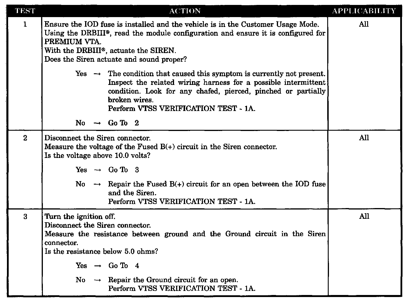 VTSS SIREN INOPERATIVE (EXPORT ONLY)