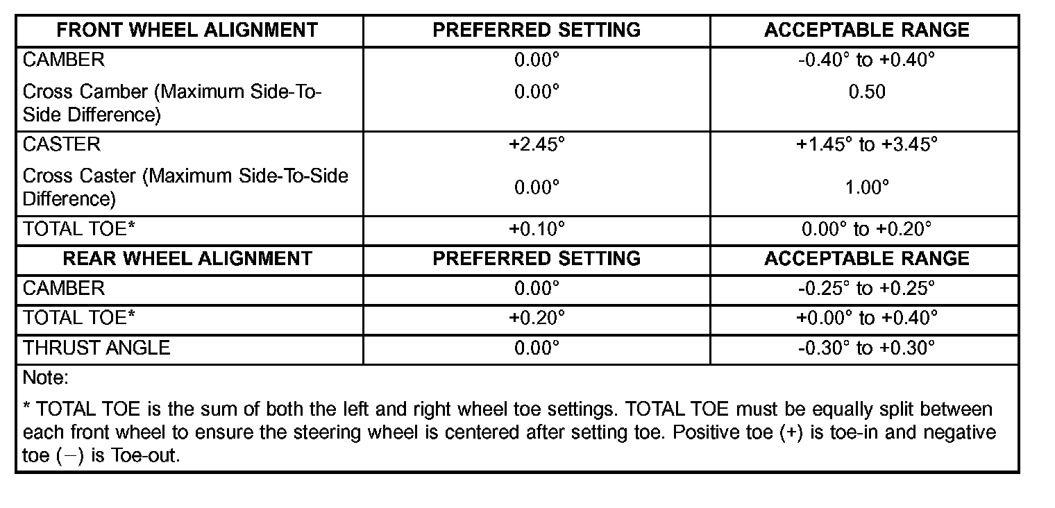All wheel alignments are to be set with the vehicle at curb height.