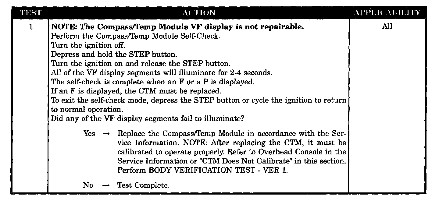 COMPASS/TEMP MODULE VF SEGMENT INOPERATIVE