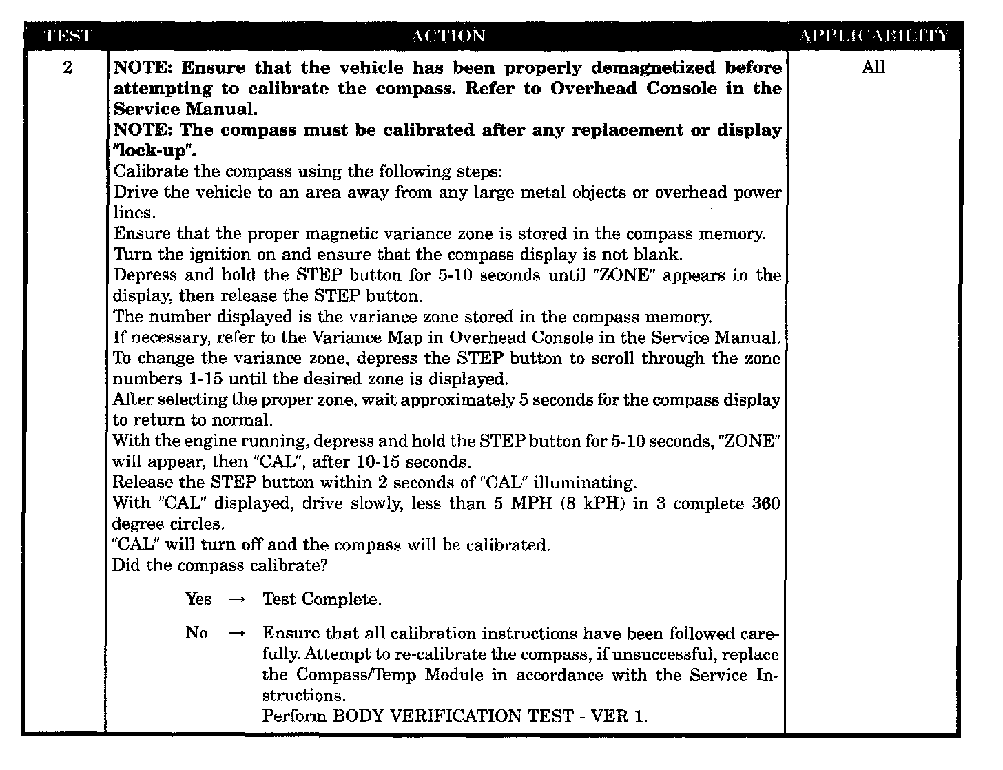 COMPASS/TEMP MODULE DOES NOT CALIBRATE